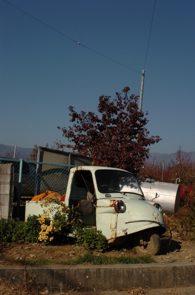 オート三輪ミゼット。やつれたミントグリーンが輝いていました。