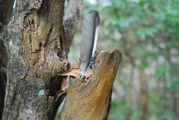 野鳥の羽を見つけた。