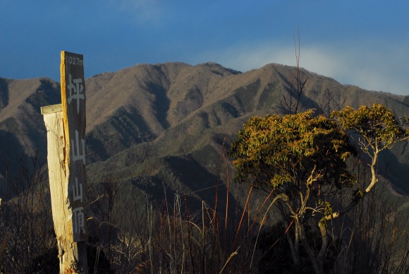 坪山山頂。1027m 反対側は山間に富士山が少し見える。