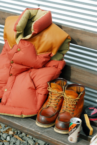 久々のオフ(何の予定もない)お気に入りのベンチでムシボシ・・・薄曇りの柔らかい光の中、冬のアイテムを風通しする。ロッキーマウンテン風のダウンベスト(ウエアハウスのダウンギッシリ渾身の復刻)とレッドウイングのアイリッシュセッター。ずいぶん履いたのでそろそろソールを直さなきゃ。