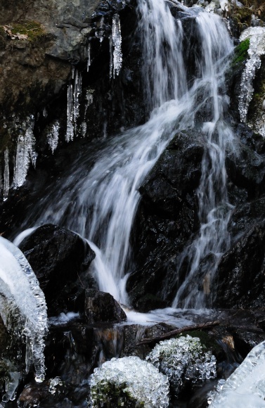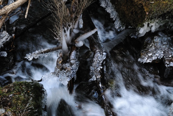 雪解けのしぶきが凍って不思議な氷のオブジェをつくる。