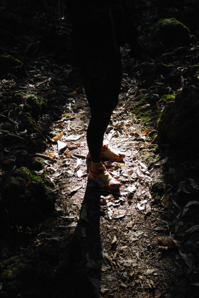 樹海に佇む六花さんの足。