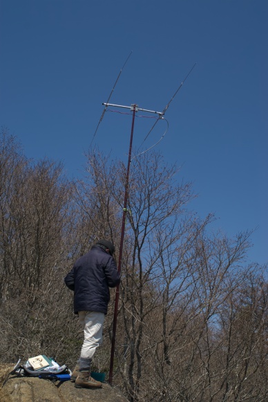 山頂でアマチュア無線をしている人に出会った。アンテナも組み立て式で持ち運びができる。山で写真を撮っている人は多いが、アンテナを立てて交信している人にははじめて出会った。かっこいい。