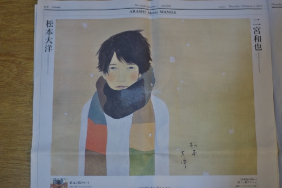 やさしいMさんが娘が嵐ファンというのを知っていて新聞を取っといてくれた。