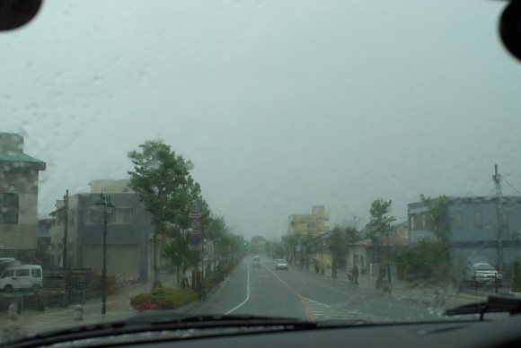 雨で景色が滲む。