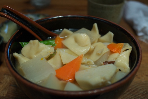 つるりんもちもちとワンタンとスイトンを合わせたような絶妙な食感。素朴で心が安らぐ優しい郷土食。