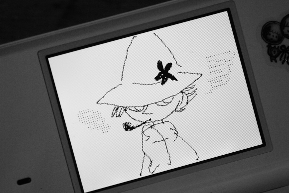 帰り道、娘がDSのパラパラ漫画で描いたスナフキン。