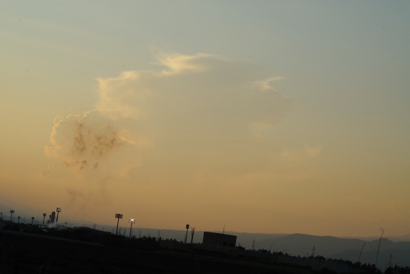 夕暮れ。高校野球終了の花火だろうか?