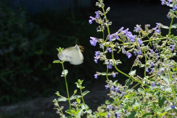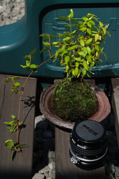 モンシロチョウが蜜をすいに。 擬似色のホッパー。 ツユクサ。 苔玉も日光浴させました。 カメラを持ったスナフキン。Keikoさんネタ。