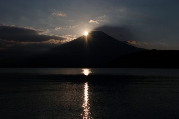正式には、富士山頂に落ちるのがダイヤモンド富士ですが、ちょっと外れた場所で撮ったので・・・