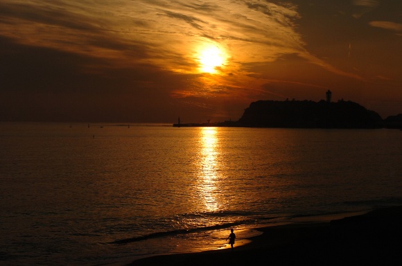山梨に居ると海の夕焼けはとっても新鮮。向こうに見えるのは江ノ島かな?