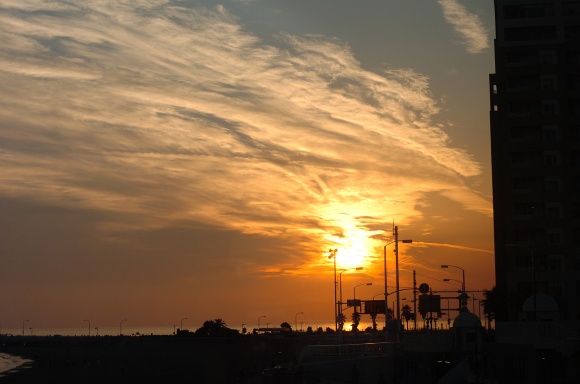 山梨に住むことになって、海辺の喫茶店で「山梨に行くんだ」分かれ際に言った時、流れていたのが、イーグルスのホテル・カリフォルニア。この夕焼けを見ていたら思い出した。もう25年も前の話。