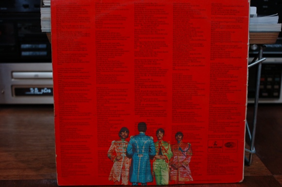 「サージェントペッパーズ」このイギリスオリジナルMONO盤を15年前手に入れた時、カルチャーショックを受けた。今まで見ていた日本盤(東芝オデオン)や米盤(キャピトル)と全然違う。とにかく美しい。日本盤がキッチェな雰囲気でとても安物に見えてしまう。ジャケットはPP加工(ビニールコーティング)色も鮮明で日本盤の潰れた印刷とは大違い(職業柄こういう所はうるさい。日本盤の印刷が世界と同じレベルになるのは、80年代ぐらいから)